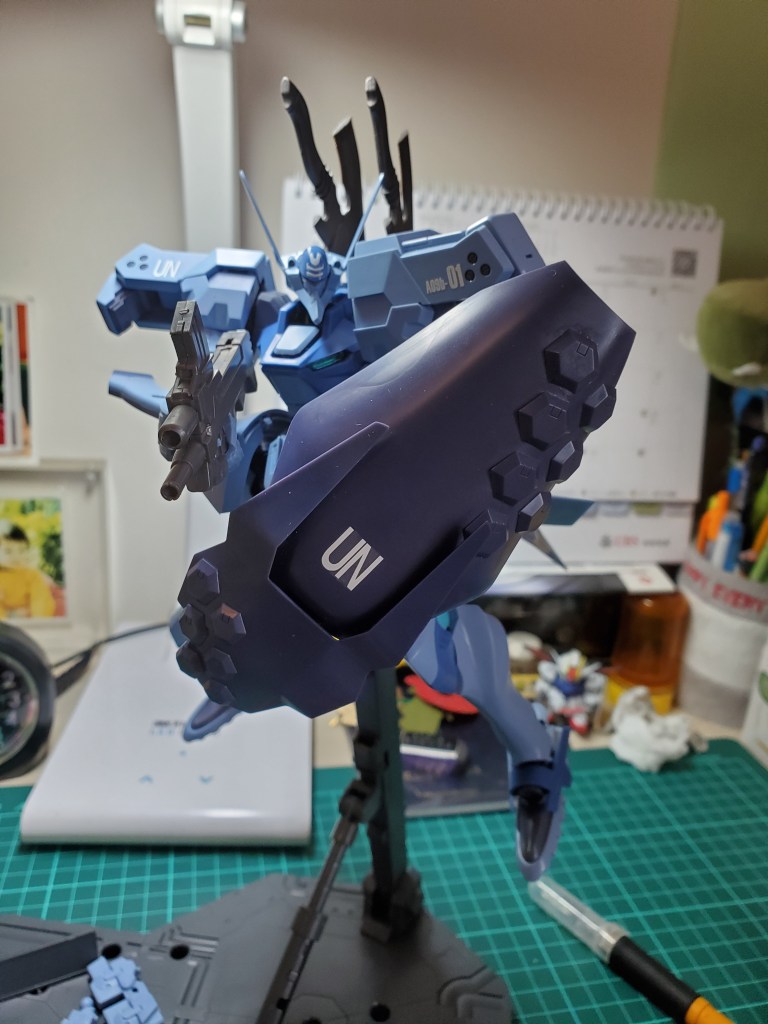 The UN symbol is a decal here, though some more softener would be better